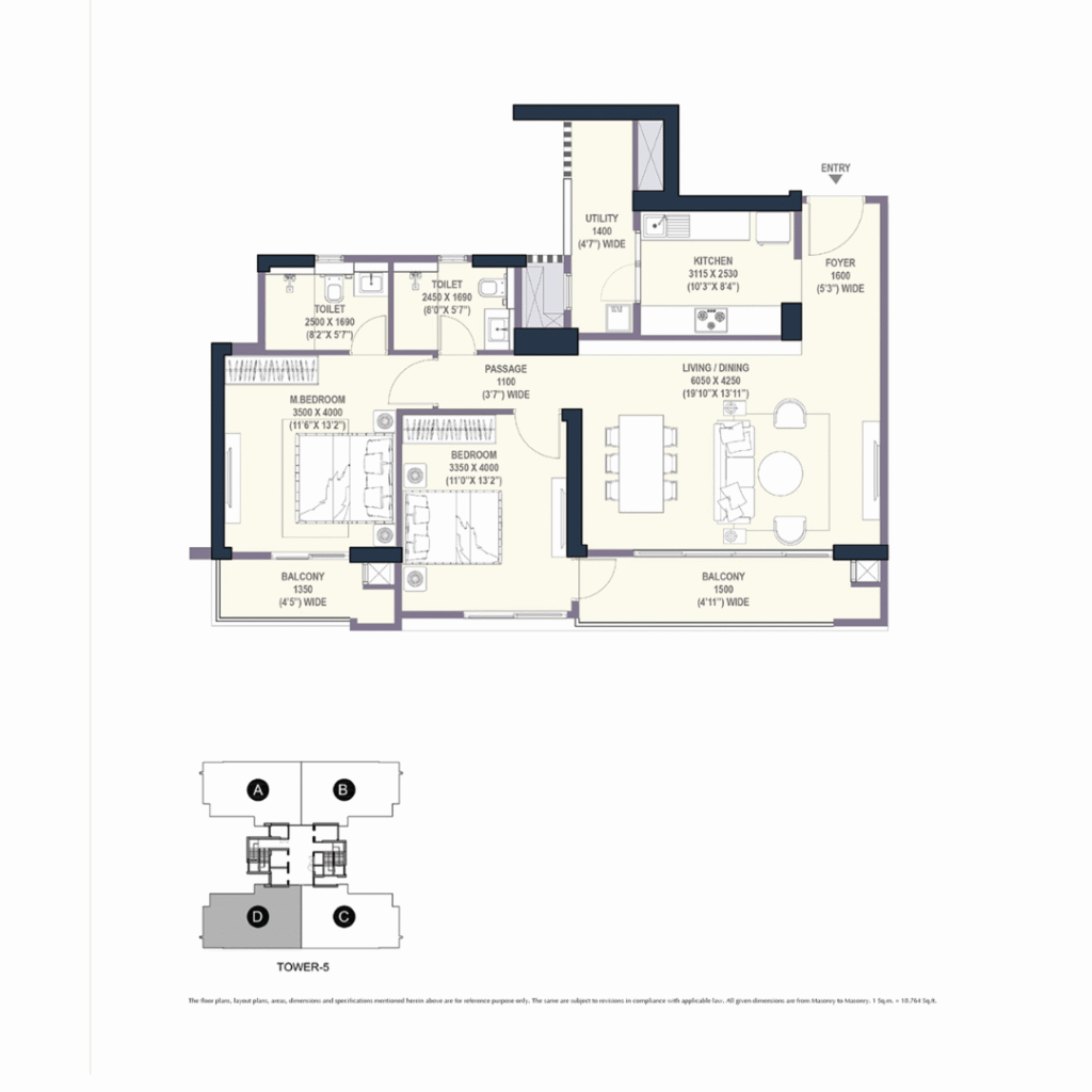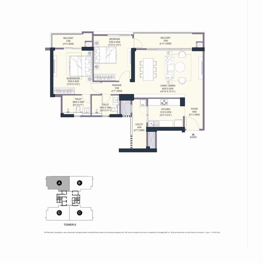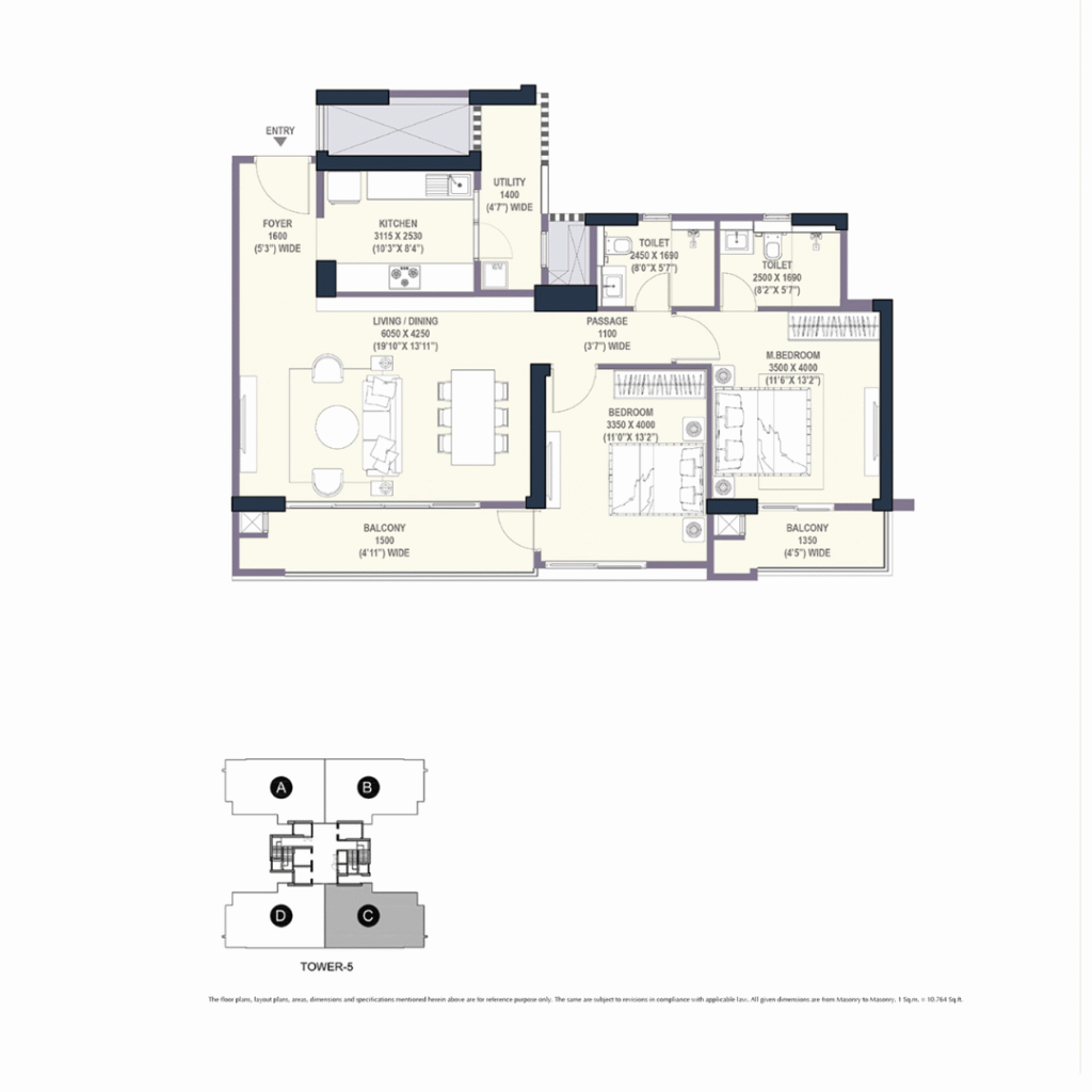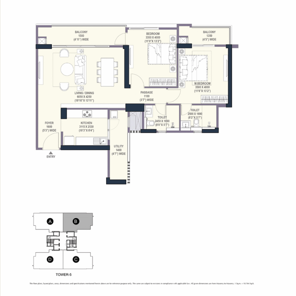 Get a full look at the layout below serving you the right structure to understand its floor plan where the right placement of the Kitchen, bedroom, bathroom, balcony, dining area, balcony and entry gives you its 100% look & feel.