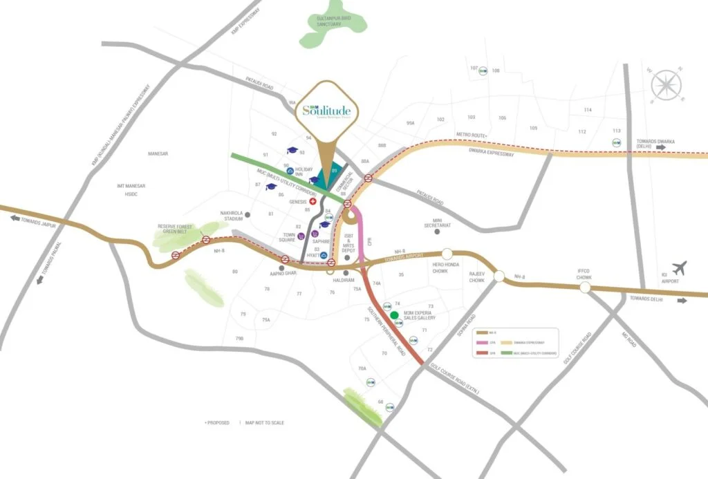 Discover M3M Soulitude, situated in Gurgaon’s Sector 89. This prime location offers excellent connectivity to Dwarka Expressway, ensuring easy access to various amenities. With a well-structured design, our property provides proximity to shopping centers, hotels, business hubs, hospitals, and educational institutions—everything you need at your fingertips.